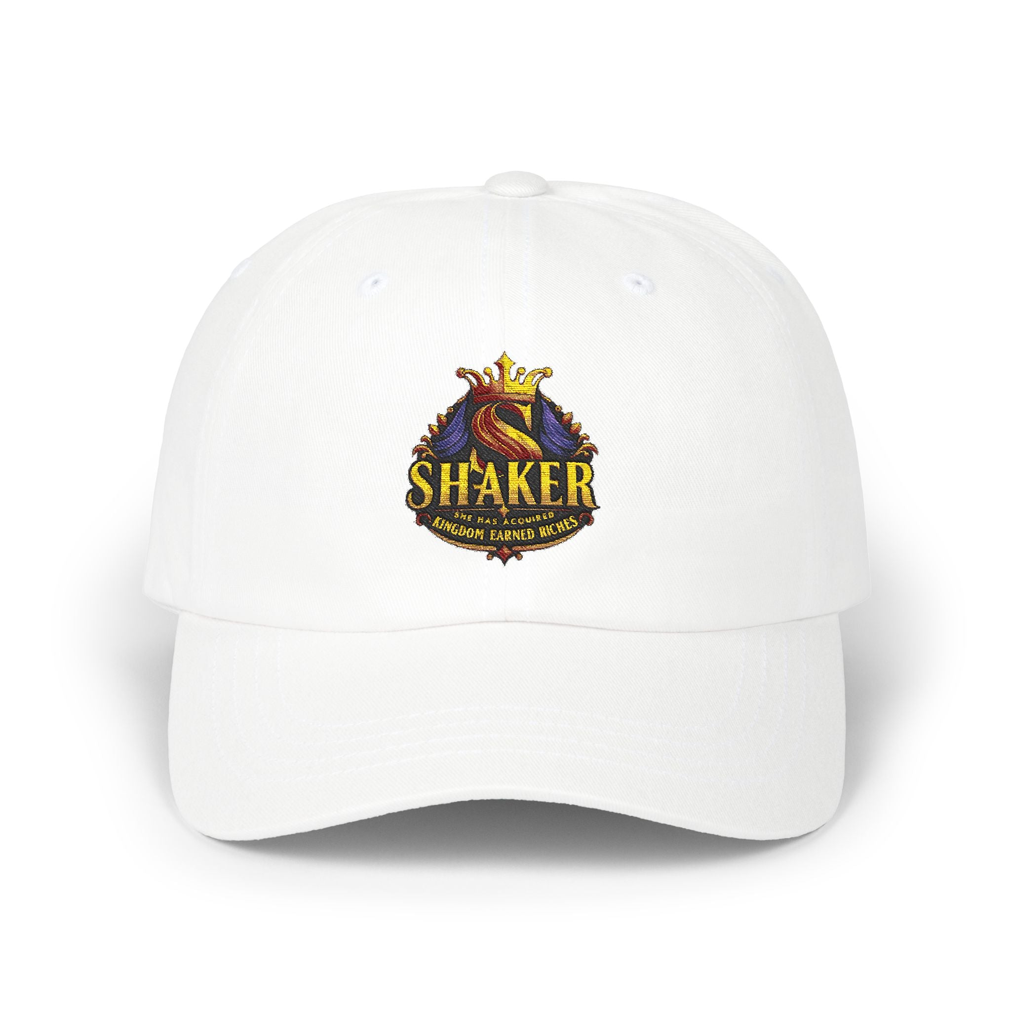 The Shaker hat celebrates women of faith who walk in divine authority and earned wisdom. Featured a white dove and golden crown, it symbolizes peace, royalty, and spiritual inheritance.